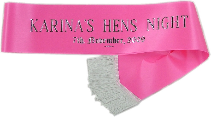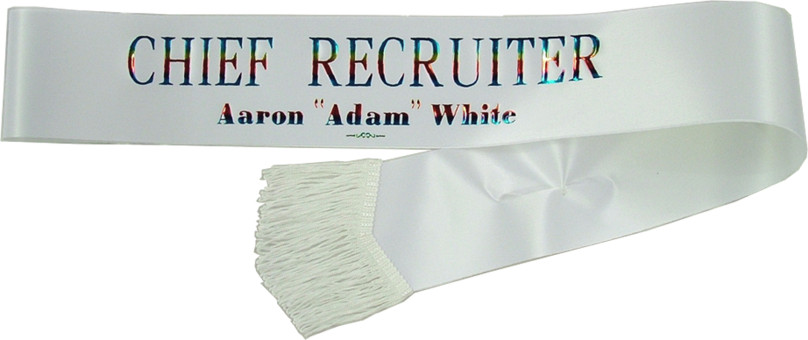 recipient and become a precious memorabilia keep-sake for life. Font type layouts providing a beautifully embossed image, are hand cut by our pre-eminent typographer. Here is a small sample of our Sashes (Click to Enlarge) |
